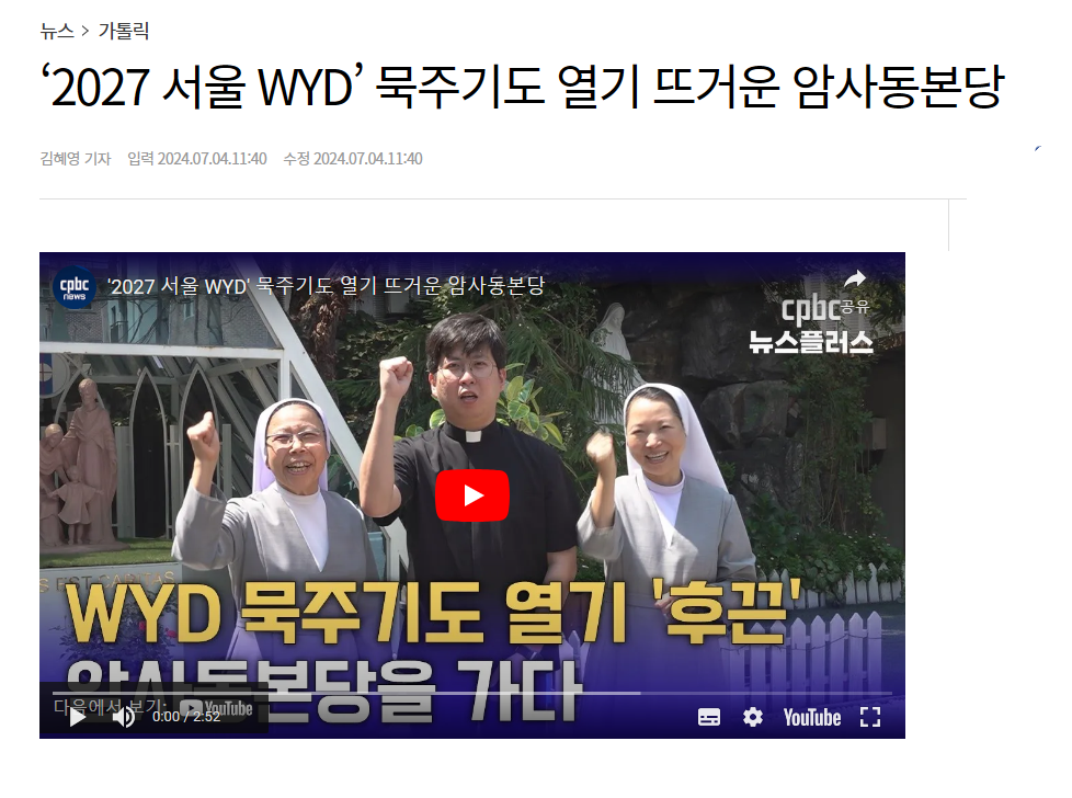 '2027 ¼¿ï WYD' ¹¬ÁÖÁ÷µµ ¶ß°Å¿î ¾Ï»çµ¿ ¼º´ç